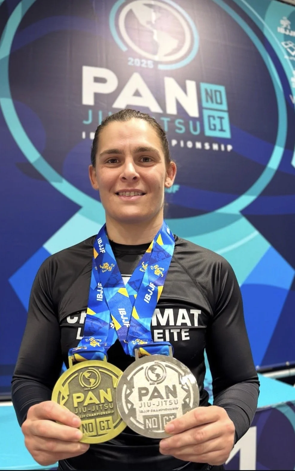 As a representative of the CheckMat team, Jéssika has earned dozens of medals in major tournaments, highlighted by her No-Gi Black Belt World title and multiple gold medals in both the adult and master divisions.